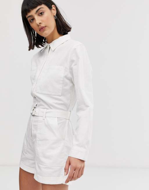 Weekday belted boiler playsuit with pockets in white Very well made.