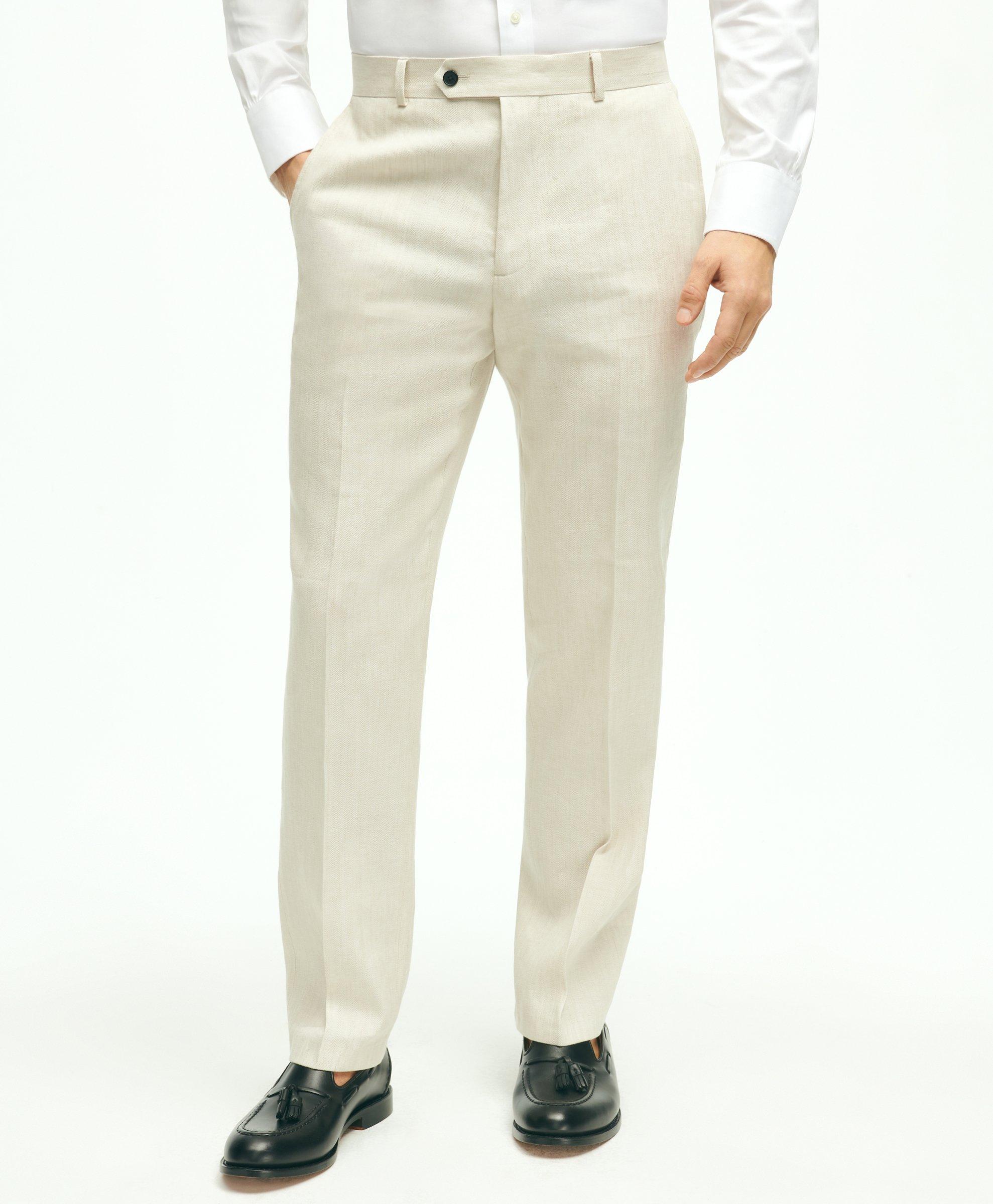 Regent Fit Linen Cotton Herringbone Suit Pants Very well made.