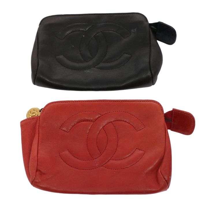 Chanel CHANEL Pouch Lamb Skin 2Set Black Red CC Auth bs9746 Grailed Very well made.