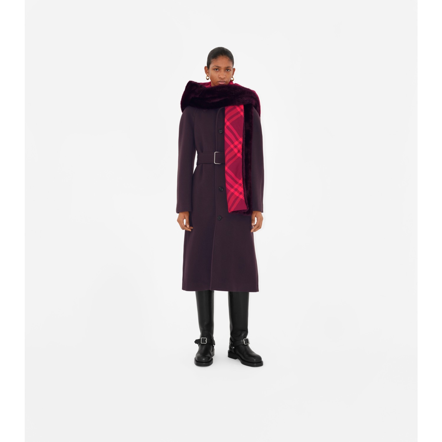 Faux Fur Hooded Scarf in Clove Women Burberry Official Very well made.