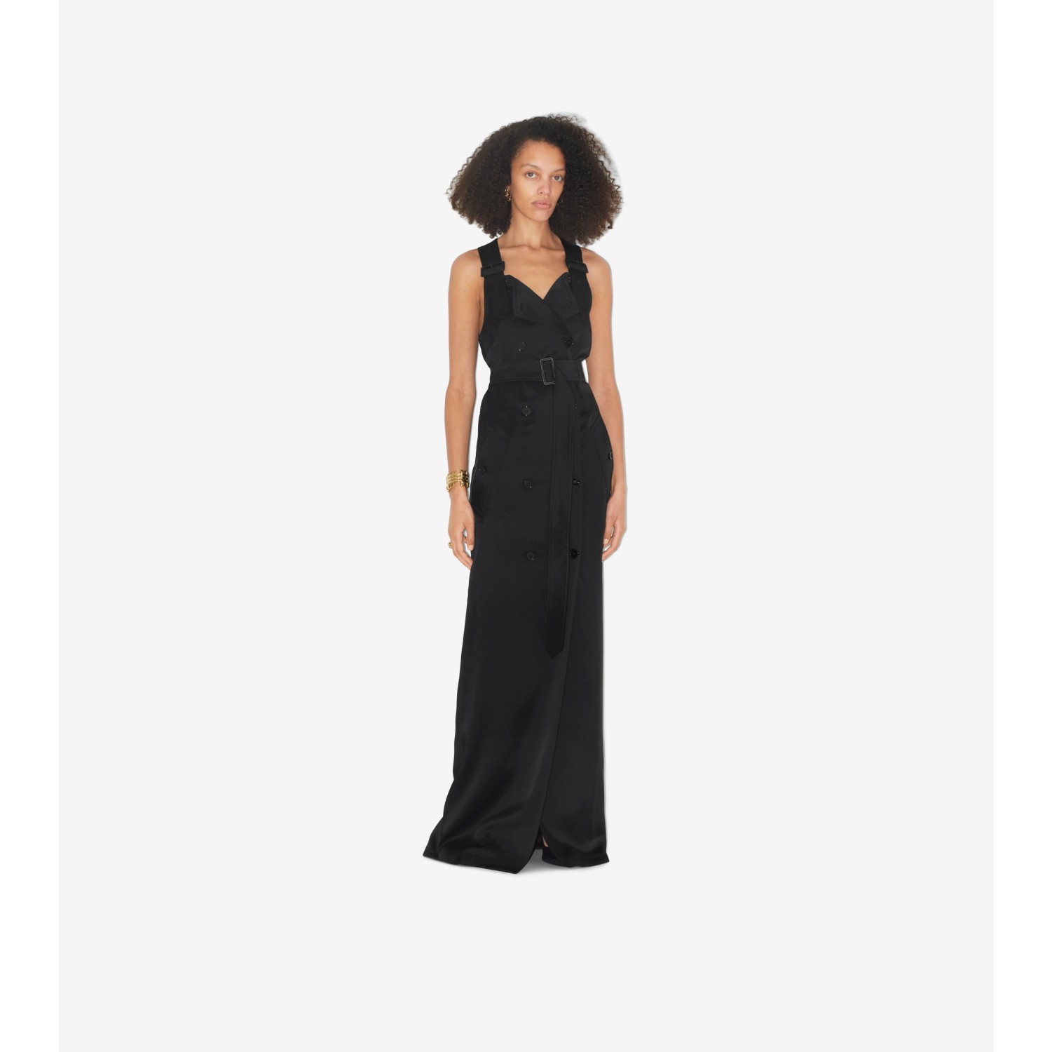 Sleeveless Satin Trench Dress in Black Women Burberry Official Very well made.