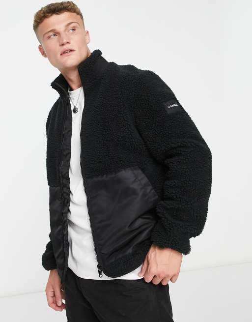 Calvin Klein teddy borg polyster blend zip through jacket in black Very well made.