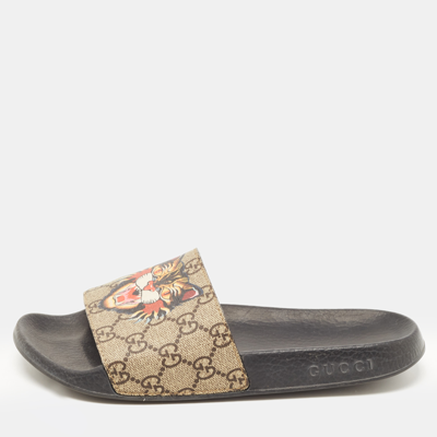 Pre owned Beige Coated Canvas Gg Supreme Angry Cat Slide Flats Size 39 Very well made.