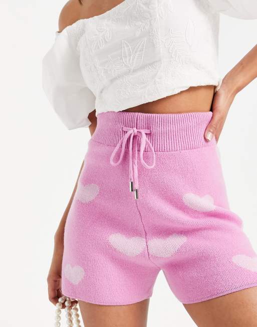 Style Cheat tie waist rib knit short co ord in pink heart print ASOS Very well made.