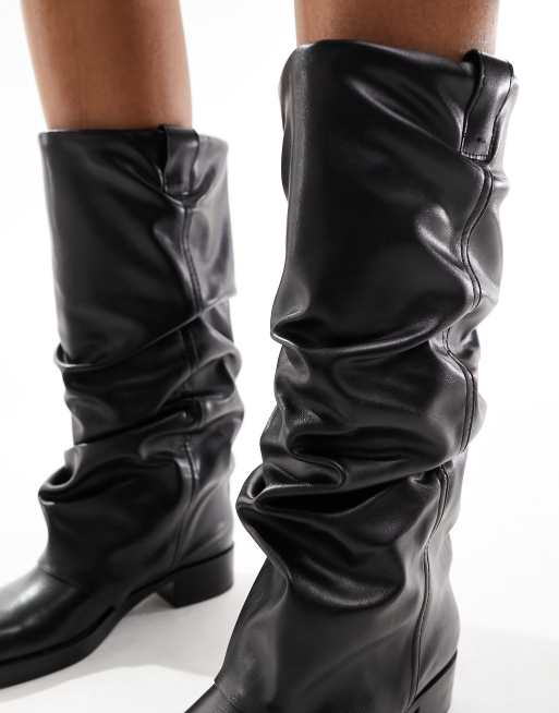 Stradivarius square toe slouch boot in black Very well made.