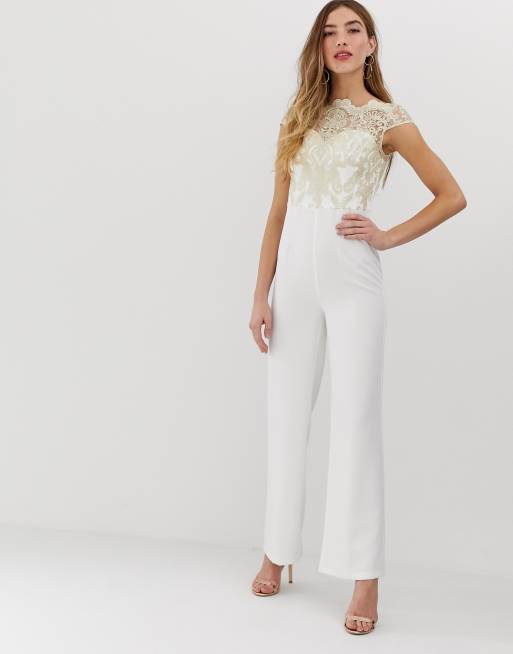 Chi Chi London premium lace jumpsuit in white Very well made.