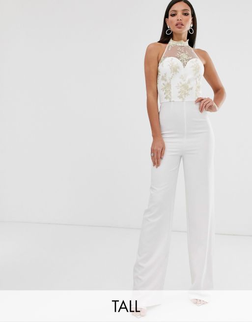 Chi Chi London Tall lace jumpsuit in white Very well made.