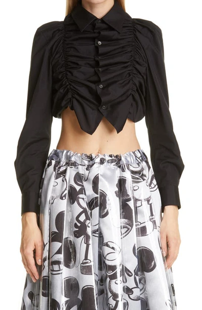 Ruched Cropped Shirt In Black Very well made.