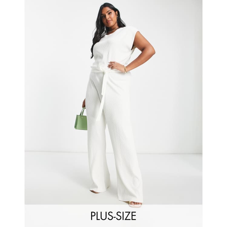 Pretty Lavish Curve tie waist ribbed knit jumpsuit in cream ASOS Very well made.
