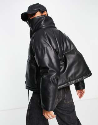 Topshop cropped hooded puffer jacket in brown Very well made.