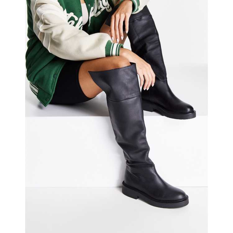 Mango Cuissardes plates en cuir Noir ASOS Very well made.