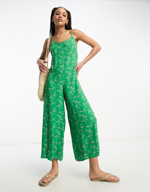ASOS DESIGN strappy culotte jumpsuit in green floral print ASOS Very well made.