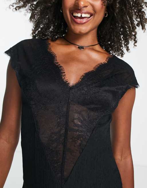Topshop Tall lace trim deep V neck midi dress in black Very well made.