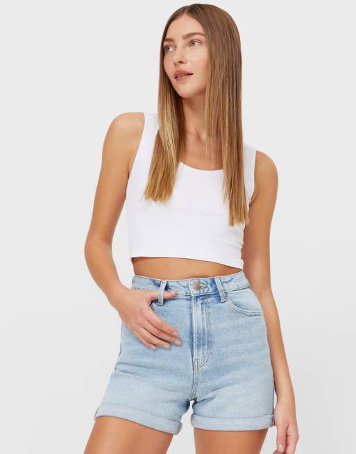 Stradivarius slim mom denim short in light wash Very well made.