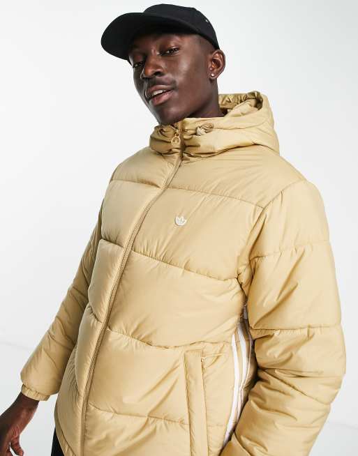 adidas Originals Gewatteerde jas met 3 Stripes en capuchon in beige Very well made.