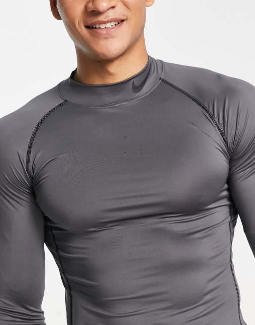 Nike Pro Training Dri FIT muscle fit mock neck long sleeve t shirt in grey Very well made.