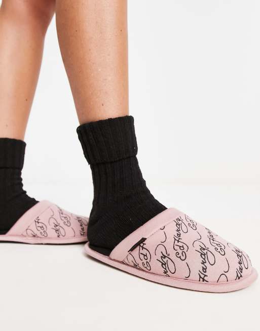 Ed Hardy Fiorella mule slipper in pink Very well made.