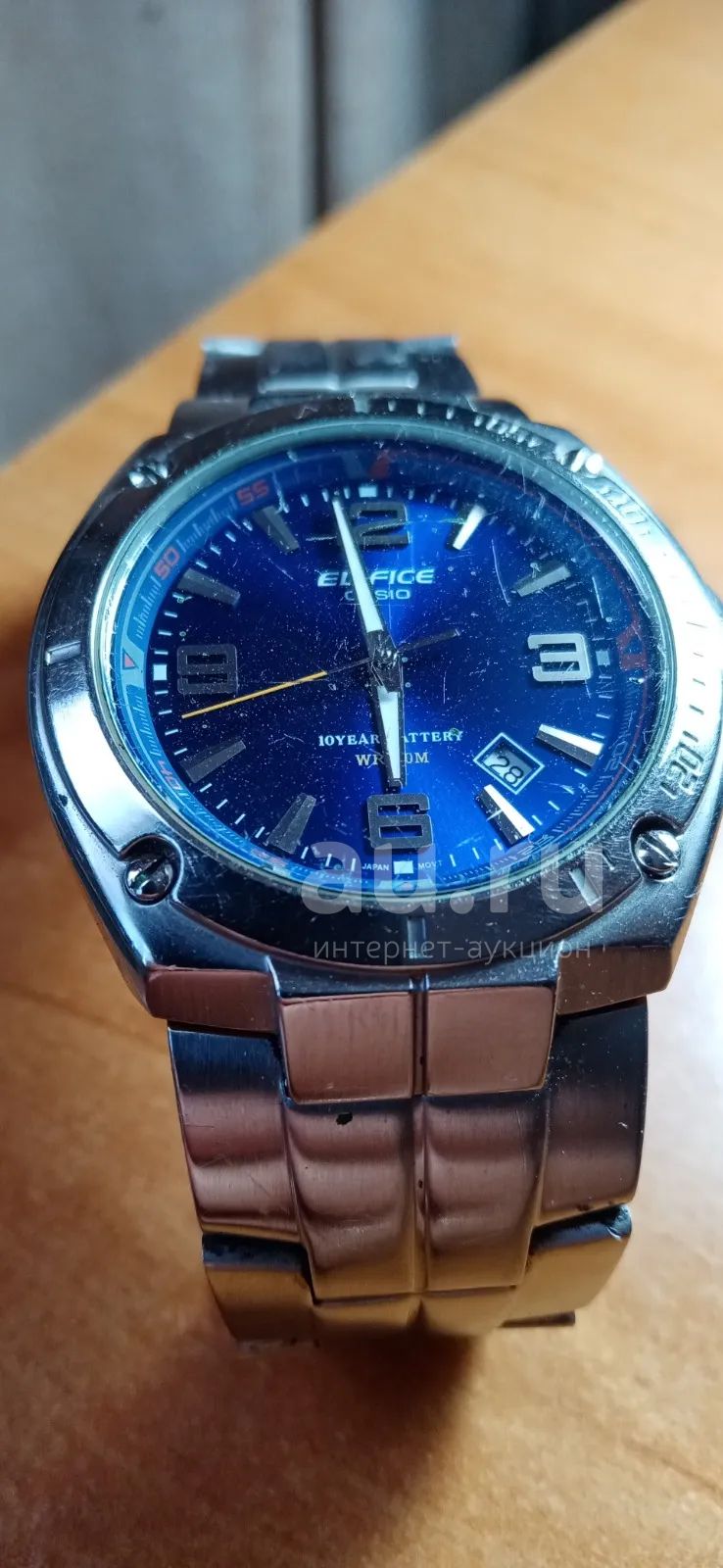 Casio Men s Edifice Blue Analog Steel 10 Year Battery 100M Date Very well made.