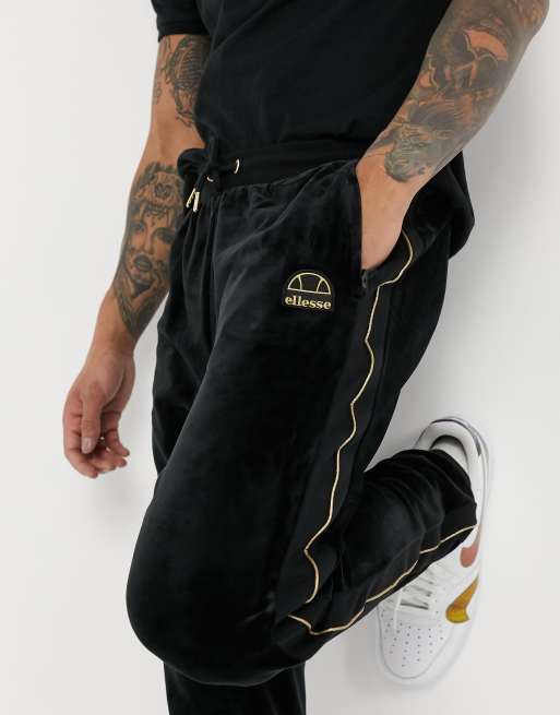 ellesse Cen metallic logo velour joggers in black Very well made.