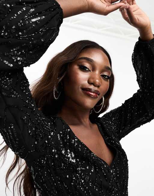 Beauut embellished wide leg jumpsuit with long sleeve in black Very well made.