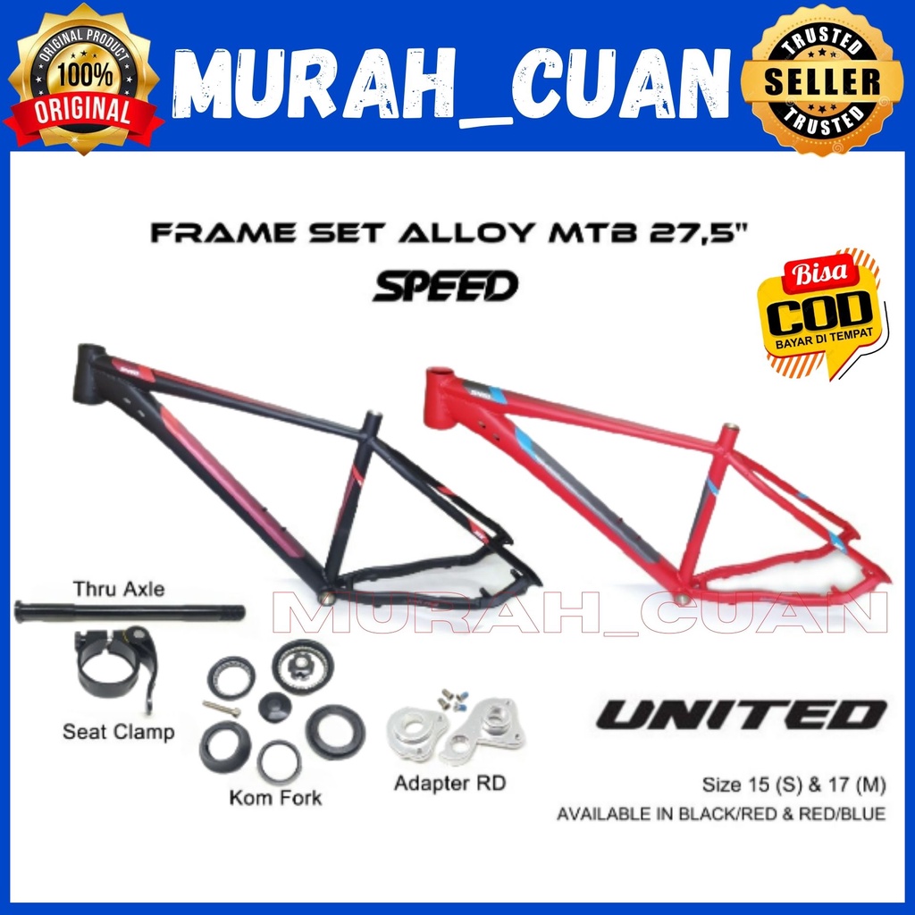 Frame MTB 27.5 United Speed Black dan Red Alloy Ringan Frame Set Sepeda Gunung MTB THRU AXLE SEAT CLAMP KOM FORK ADAPTER RD Very well made.
