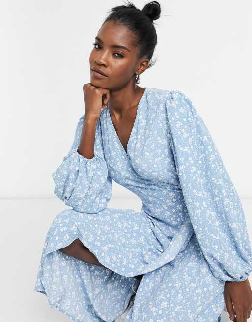 Glamorous wrap front midi dress in blue floral Very well made.