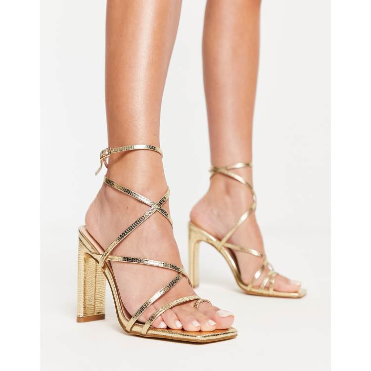 Public Desire Gold Strappy Block Heeled Sandals New Look Very well made.