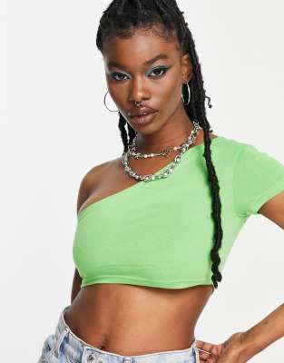 One Shoulder Crop Rib Top Green NA KD Very well made.