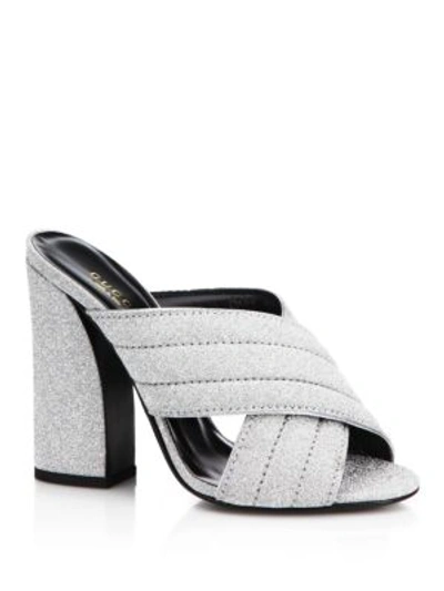 Gucci Webby Metallic High Heel Slide Sandals In Silver ModeSens Very well made.