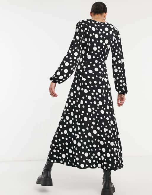 ASOS DESIGN Tall maxi tea dress in half and half black and white spot print Very well made.