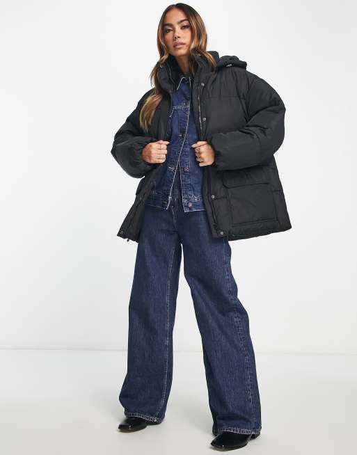 NA KD oversize padded jacket with hood in black Very well made.