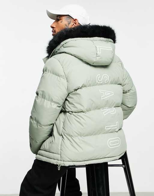 Il Sarto faux fur hooded printed puffer in light green ASOS Very well made.