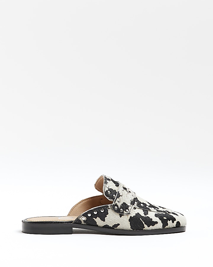 Black animal print leather backless loafers River Island Very well made.