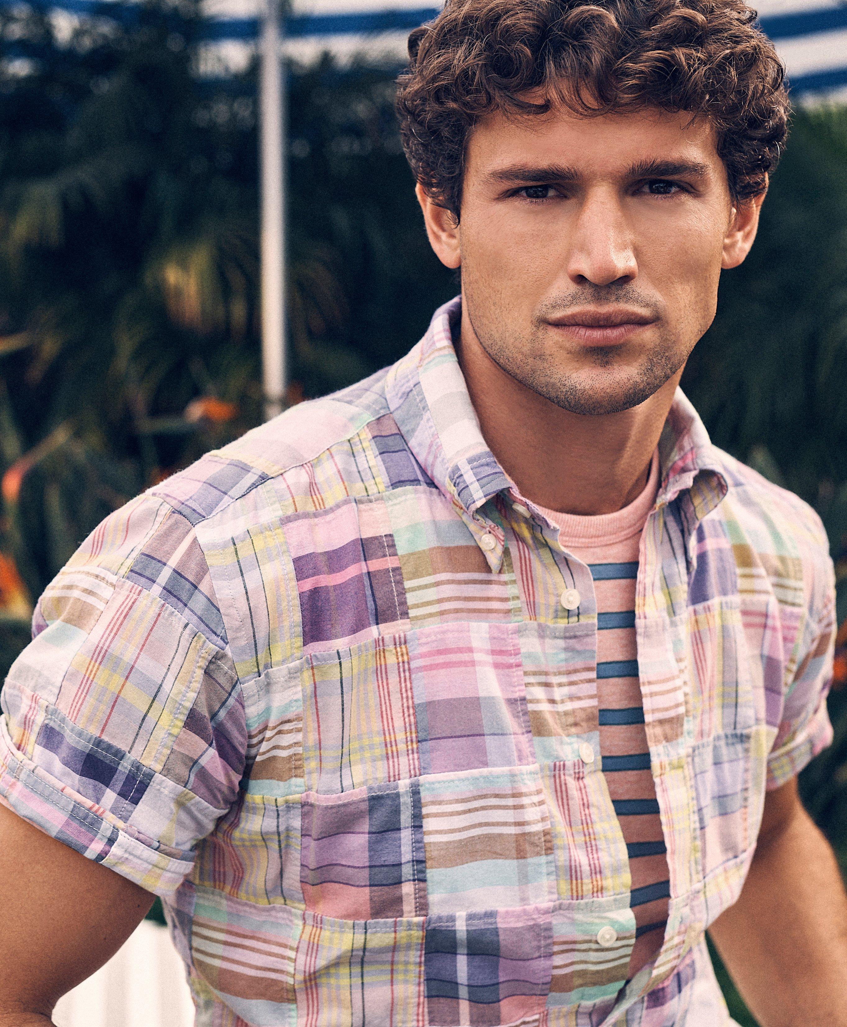 Washed Cotton Madras Patchwork Short Sleeve Sport Shirt Very well made.