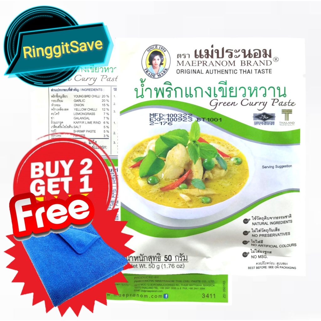 Maepranom Brand Thai Green Curry Paste 50 gm HALAL MAEPRANOM Thai Green Curry Paste 50g Packet Very well made.