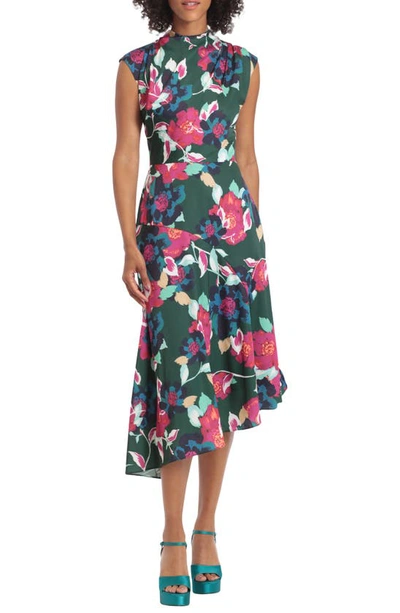 Maggy London Floral Print Asymmetric Hem Midi Dress In Multi Very well made.