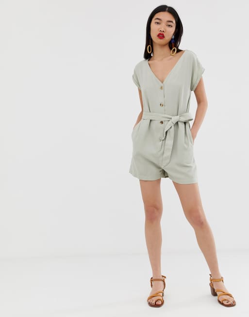 Mango button front playsuit in beige Very well made.