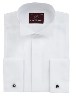 2in Longer Pure Cotton Pleated Dress Shirt M S Collection Luxury Very well made.