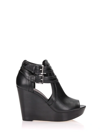MICHAEL Michael Kors Blaze Platform Peep Toe Black Leather Wedge Very well made.