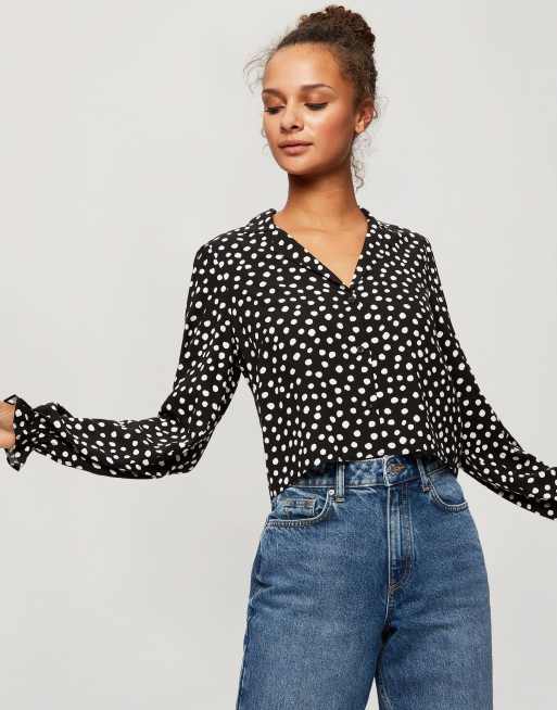 Buy Miss Selfridge women v neck long sleeves polka dot blouse Very well made.