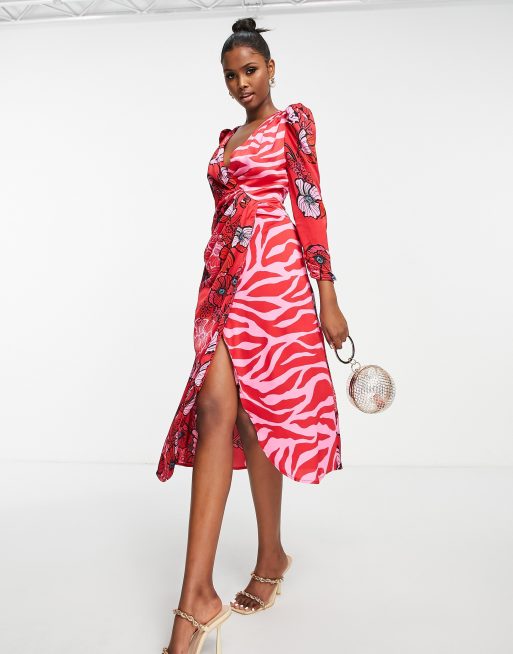 Liquorish midi wrap dress in red mixed print Very well made.