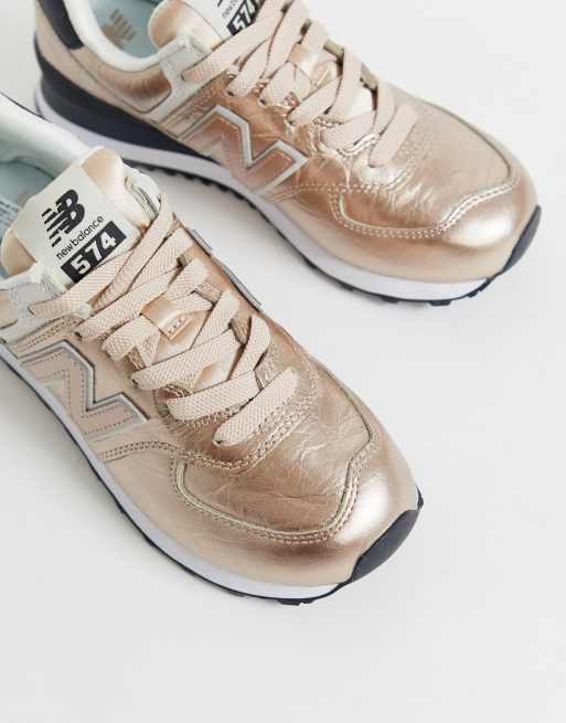 New Balance 574 metallic trainers in rose gold Very well made.