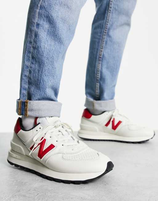 New Balance 574 Sneakers premium bianche e rosse Very well made.