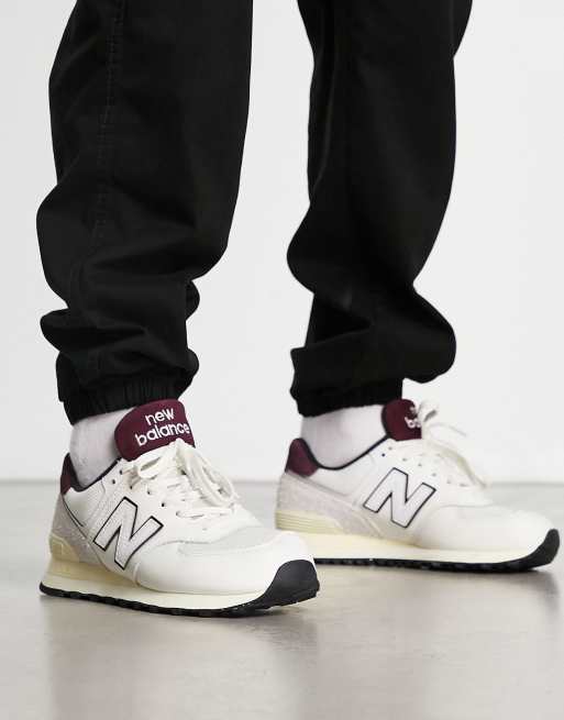 New Balance 574 Sneakers in wit en bordeauxrood Very well made.