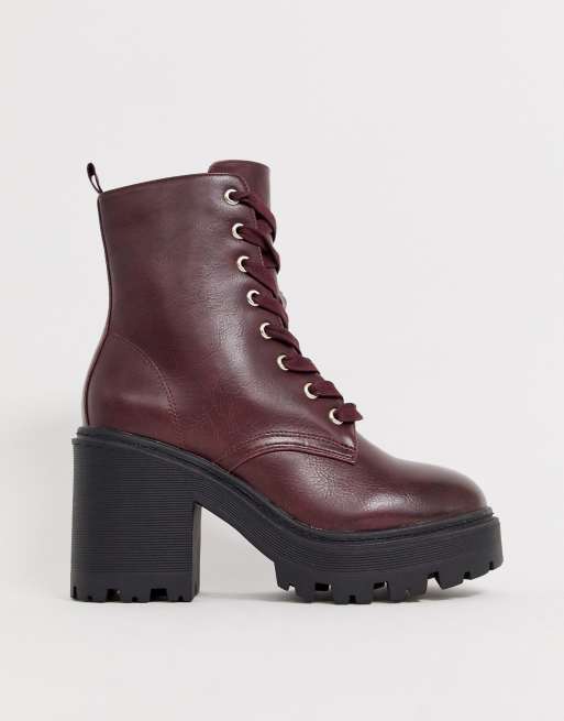 New Look leather look lace up heeled boot in burgundy Very well made.