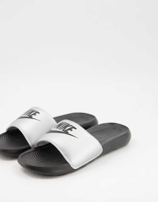 Nike Victori One sliders in black silver Very well made.