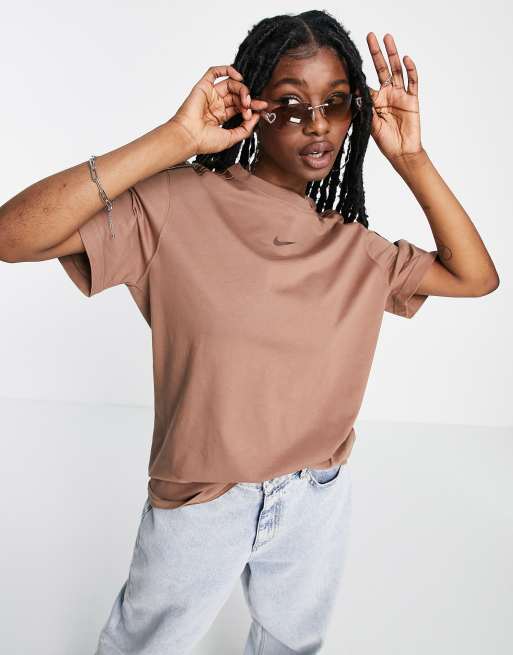 Nike Women s Sportswear Boyfriend Tape T shirt Archaeo Brown Very well made.