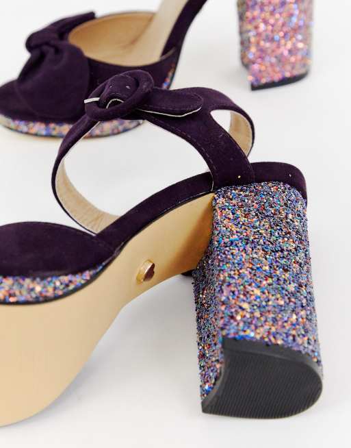 Oasis block heeled sandals with glitter heel in purple Very well made.