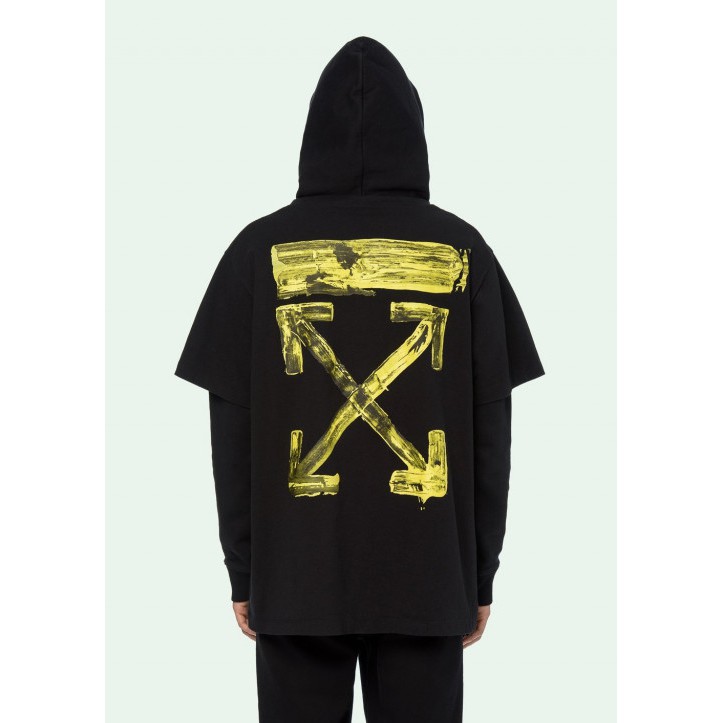 Off White FW19 Acrylic Double T shirt Hoodie Black Yellow 100 Original Very well made.