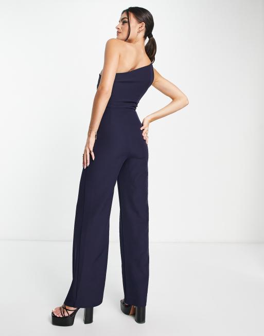 Zoey One Shoulder Exaggerated Ruffle Jumpsuit Navy Girl In Mind Very well made.